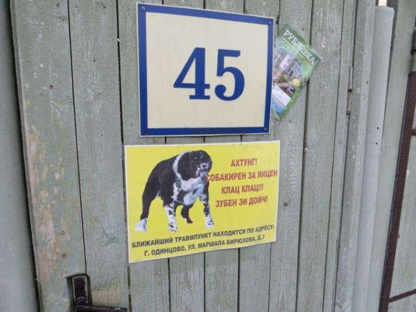 Но если собачья тема отражена на заборах, то один из соседей Леонида Ярмольника по деревне Подушкино решил стать оригинальным. Видимо, человек находится во внутренней эмиграции.