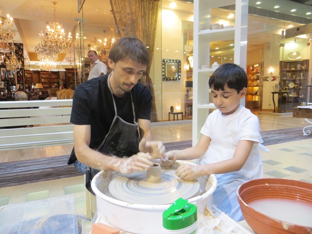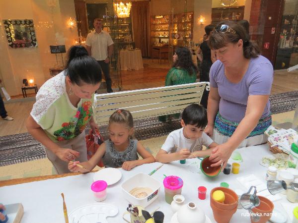 Начало проекта "Творческая мастерская" было ознаменовано вечеринкой, на которой известные москвичи вместе со своими детишками осваивали азы рукоделия. Например, можно было попробовать себя в роли гончара, вылепив свой первый в жизни глиняный горшок на самом настоящем гончарном круге.